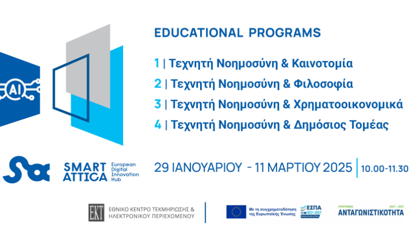 Διαδικτυακά εκπαιδευτικά προγράμματα από το ΕΚΤ για την Τεχνητή Νοημοσύνη και τις εφαρμογές της 21 Ιανουαρίου, 202529 Ιανουαρίου έως 11 Μαρτίου 2025, διαδικτυακά Το Εθνικό Κέντρο Τεκμηρίωσης & Ηλεκτρονικού Περιεχομένου (ΕΚΤ), με τον ρόλο του ως μέλος του Ευρωπαϊκού Κόμβου Ψηφιακής Καινοτομίας Smart Attica EDIH, εγκαινιάζει…Read More