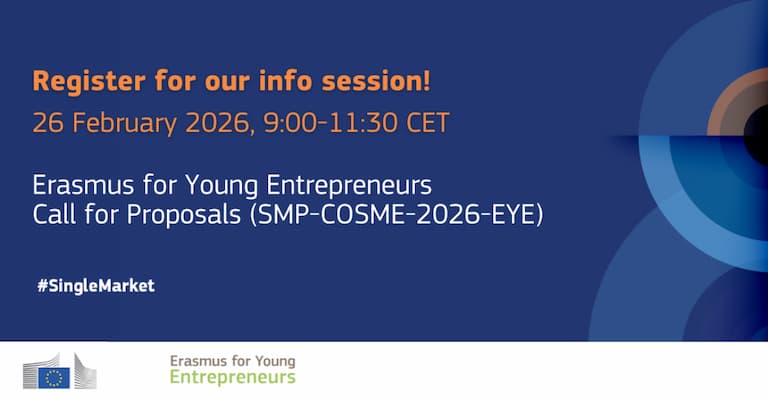 Εκδηλώσεις25 Φεβρουαρίου, 2026Online Info Session: Call for Proposals “Erasmus for Young Entrepreneurs” SMP-COSME-EYE-2026
