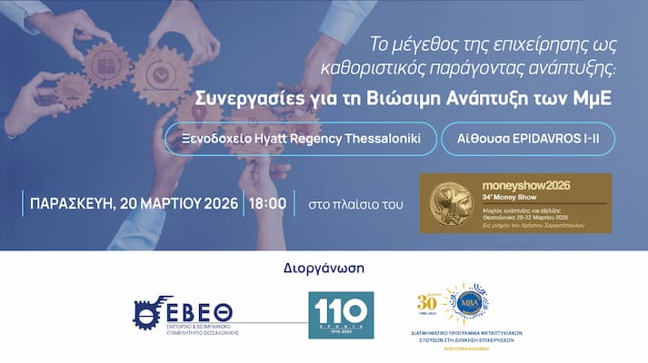 Εκδηλώσεις11 Μαρτίου, 2026Εκδήλωση ΕΒΕΘ-ΠΑΜΑΚ «Το Μέγεθος της Επιχείρησης ως Καθοριστικός Παράγοντας Ανάπτυξης», στις 20 Μαρτίου, στο 34ο Money Show