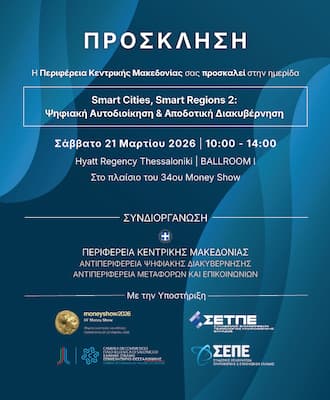 Εκδηλώσεις12 Μαρτίου, 2026Smart Cities, Smart Regions 2: Ψηφιακή Αυτοδίοικηση & Αποδοτική Διακυβέρνηση