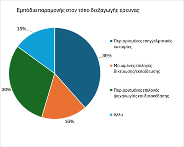 • Τα εμπόδια: Κυριότερα αντικίνητρα παραμονής αποτελούν οι περιορισμένες επαγγελματικές ευκαιρίες (39%) και επιλογές ψυχαγωγίας (30%).